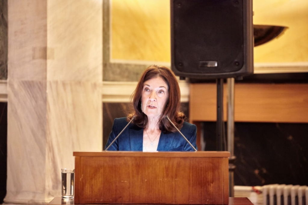 Και συνέχισε: «Οι σημερινές τιμώμενες, με «ανασκαφικό χώρο» την Ελληνική Γραμματεία και αέναο πεδίο έρευνας την ερμηνεία του ελληνικού τοπίου αλλά και των ανθρώπων αυτού του τόπου, εργάστηκαν και εργάζονται επί σειρά ετών για την προβολή του ελληνικού πολιτισμού και τη διάδοσή του ως κοινού τόπου αναφοράς όλων μας. Και οι δύο επέλεξαν να μοιράζουν τον χρόνο ζωής τους μεταξύ των χωρών καταγωγής και εργασίας τους και της Ελλάδας. Για εκείνες, όπως και για τον Μπάιρον, η Ελλάδα είναι πατρίδα επιλογής».