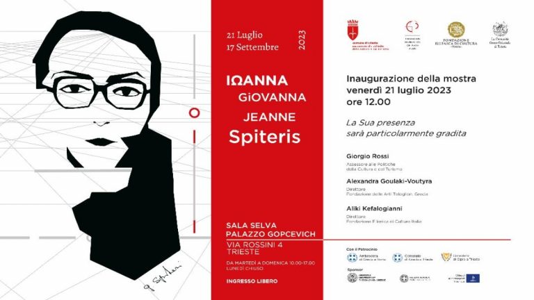 Την Παρασκευή 21 Ιουλίου 2023 και ώρα 12.00, στην αίθουσα Sala Selva του μουσείου Palazzo Gopcevich (οδός Rossini,  4) στην Τεργέστη, θα γίνουν τα εγκαίνια της έκθεσης “Ιωάννα-Giovanna-Jeanne Spiteris”.
