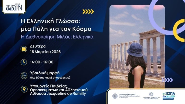 Στις 16 Μαρτίου 2026, η Study in Greece (SiG), υπό την αιγίδα του Υπουργείου Παιδείας, Θρησκευμάτων και Αθλητισμού και του Υπουργείου Εξωτερικών, διοργανώνει ημερίδα αφιερωμένη στην ελληνική γλώσσα και στη διδασκαλία της σε ολόκληρο τον κόσμο, αναδεικνύοντας τον ρόλο της ως διαχρονικού φορέα πολιτισμού και ως σύγχρονου στρατηγικού εργαλείου διεθνοποίησης των ελληνικών πανεπιστημίων.