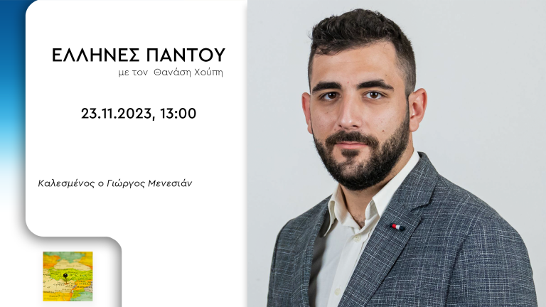 Την Πέμπτη, 23 Νοεμβρίου 2023, στις 13:10, η εκπομπή «’Έλληνες παντού» με τον Θανάση Χούπη θα φιλοξενήσει τον Διεθνολόγο, Ερευνητή στο «Washington Institute for Defence & Security», Γιώργο Μενεσιάν.