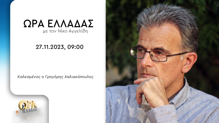 Ο Γρηγόρης Χαλιακόπουλος φιλοξενείται την Δευτέρα 27 Νοεμβρίου στις 9.00 ώρα Ελλάδας στην εκπομπή «Ώρα Ελλάδας» με τον Νικόλα Αγγελίδη.