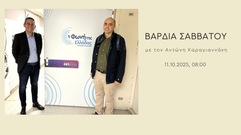 Αυτό το Σάββατο, 11 Οκτωβρίου 2025, στις 08:00 ώρα Ελλάδας, η εκπομπή “Καλές Θάλασσες – Βάρδια Σαββάτου” στη Φωνή της Ελλάδας φιλοξενεί τον Ηλία Ντεμιάν, επικεφαλής του Τμήματος Περιβαλλοντικών Οικονομικών και τον Svetoslav Danchev, Υπεύθυνο Μακροοικονομικής Ανάλυσης και Πολιτικής – και οι δύο από το Ίδρυμα Οικονομικών και Βιομηχανικών Ερευνών (ΙΟΒΕ).