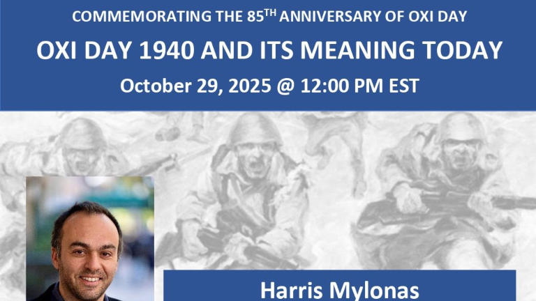 Η εκδήλωση, της οποίας κεντρικός ομιλητής θα είναι ο Δρ Χάρης Μυλωνάς, αναπληρωτής καθηγητής Πολιτικής Επιστήμης και Διεθνών Σχέσεων στο Πανεπιστήμιο George Washington, θα πραγματοποιηθεί την Τετάρτη, 29 Οκτωβρίου, στις 12 μ.μ. (ώρα Ανατολικής Ακτής).