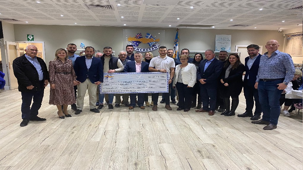 Η Παγκρητική Ένωση Μελβούρνης παραδίδει την επιταγή.