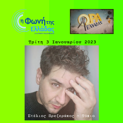 Ο Στέλιος Πρεζεράκος από το Πέραμα… ζει περισσότερο από μια δεκαετία στην Ιαπωνία. Είναι καθηγητής Φυσικής στο Διεθνές Λύκειο του Τόκιο και συγγραφέας του βιβλίου “Ένας Έλληνας στο Edo”… Μιλάει στην εκπομπή ΩΡΑ ΕΛΛΑΔΑΣ και τον Νικόλα Αγγελίδη για τη ζωή εκεί, για το πως τον υποδέχτηκαν ως Έλληνα, για όλα όσα δημιουργεί και όσα του λείπουν από την ελληνική καθημερινότητα… Η ζωή του κυλάει σε διαφορετικούς… όμορφους και δημιουργικούς ρυθμούς… άλλα όταν τον ρωτάς για την Ελλάδα, απαντά αφοπλιστικά “είναι το σπίτι μου”… Ακούστε ΟΛΗ την εκπομπή ΩΡΑ ΕΛΛΑΔΑΣ της Τρίτης 3 Ιανουαρίου 2023.